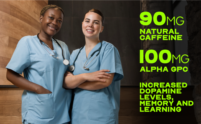 - 90 mg Caffeine and Alpha GPC